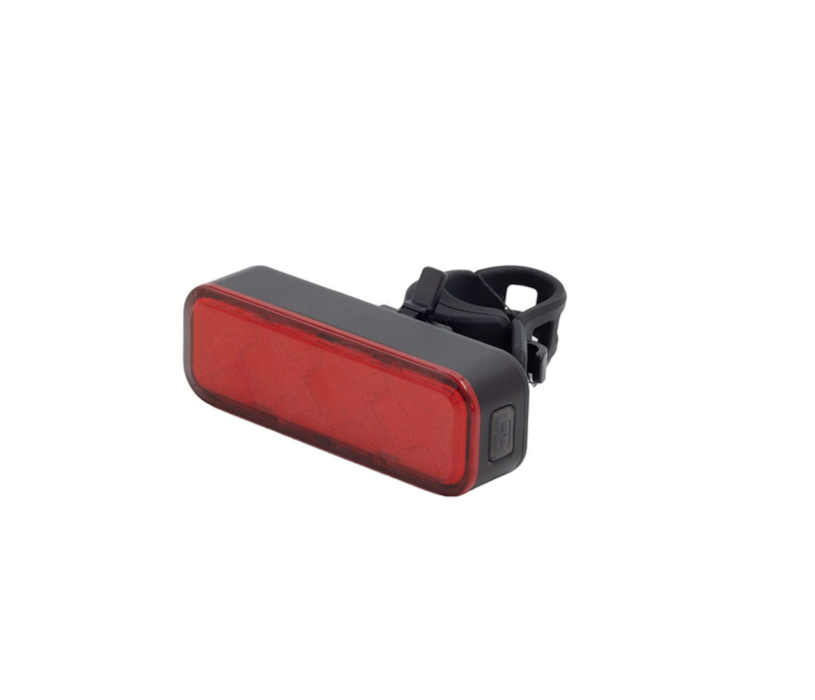Multifunkční zadní světlo s výkonem 300 lm, automatickým brzdovým senzorem, 5tónovým elektronickým zvonkem a vestavěným pohybovým alarmem proti krádeži. Ovládání probíhá pomocí bezdrátového dálkového ovladače.