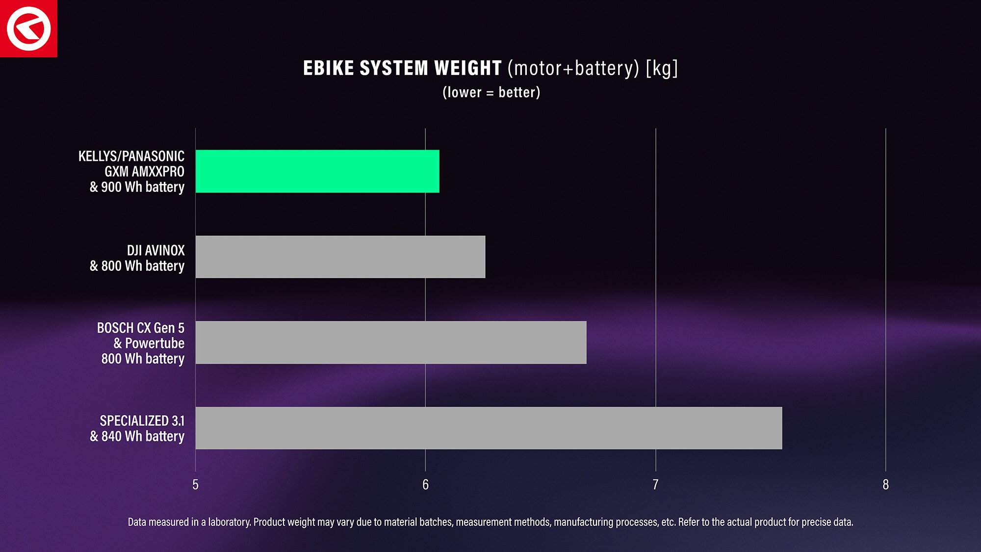 • KELLYS K2 AMXXPRO carbon batteries: Weighing up to 3.5 kg, available in 900 Wh, 820 Wh, and 725 Wh versions. With an energy density of up to 257 Wh/kg, they are up to 20% lighter than competing solutions while offering higher-capacity options.